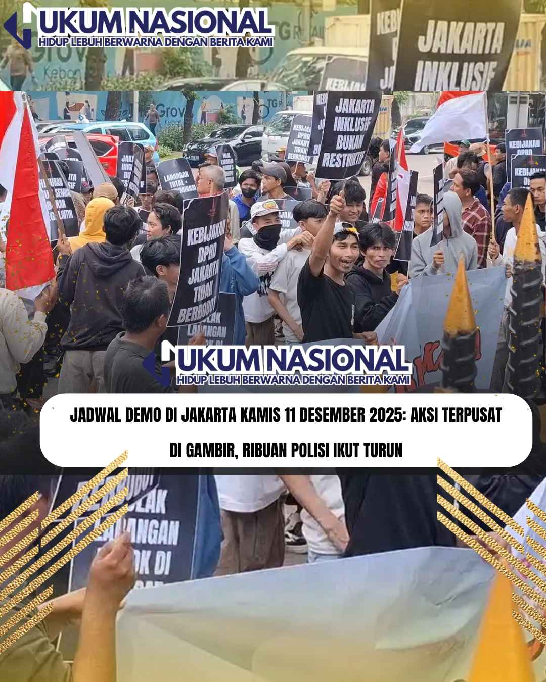 www.hukumnasional.com.ǁJakarta,11 Desember 2025-Jakarta kembali bersiap menghadapi gelombang aksi unjuk rasa yang akan digelar pada hari ini, Kamis, 11 Desember 2025.