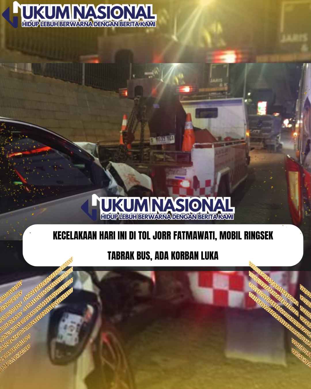 www.hukumnasional.com.ǁJakarta,8 Februari 2026-Peristiwa kecelakaan hari ini di Tol Jakarta Outer Ring Road (JORR) Fatmawati, Jakarta Selatan, mobil ringsek tabrak bus, Minggu (8/2/2026).