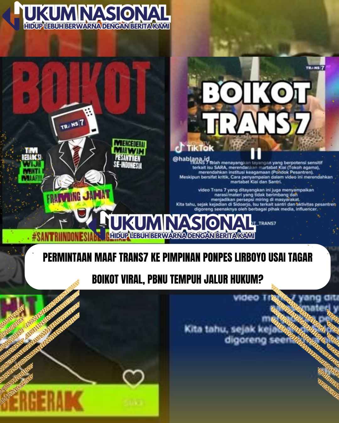 www.hukumnasional.com.ǁJakarta,14 Oktober 2025-Di media sosial saat ini tengah ramai tagar Boikot Trans 7. Tagar ini trending nomor 1 di X pada Selasa (14/10/2025) dengan 8.500 postingan.